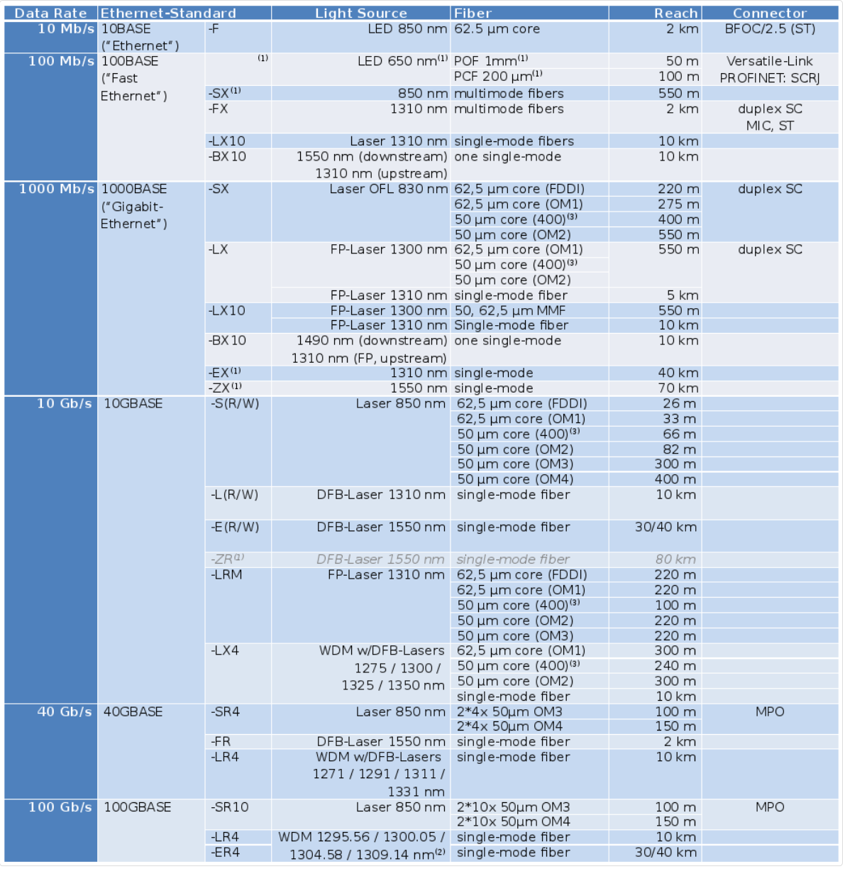TenGigabit Ethernet (Glasfaser)802.3ae10GBit/s10GBASE-T100 Meter Kupfer, 40km SMF, 550m MMF