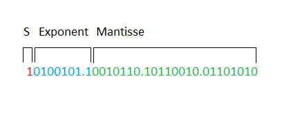 Eine Gleitkommazahl im IEEE 754-Format besteht aus drei Teilen