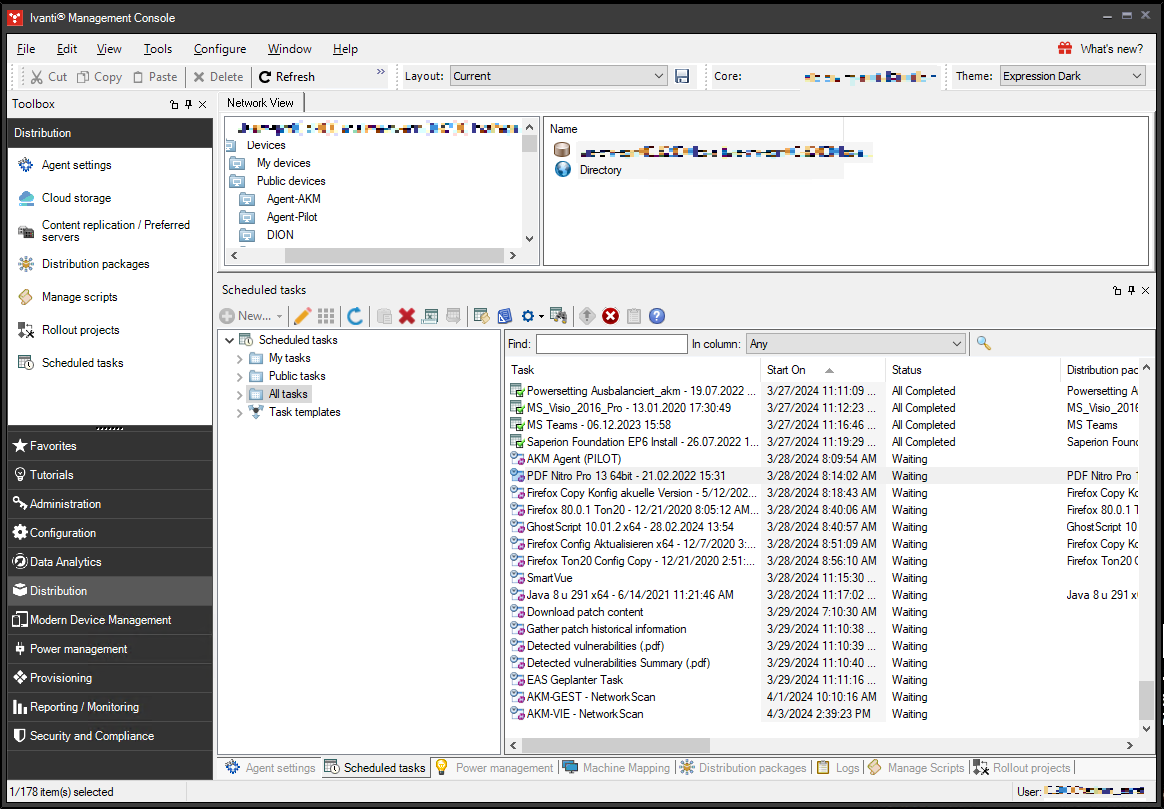 Zuerst unter „Distribution → Distribution Packages“ ein Package erstellen und dann unter „Provisioning → Scheduled Task“ einen Task zum verteilen erstellen.