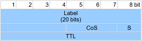 LabelDas Feld enthält den tatsächlichen Wert für das Etikett. Dies gibt Auskunft über das Protokoll in der Vermittlungsschicht und weitere Informationen, die zum Weiterleiten des Pakets benötigt werden.