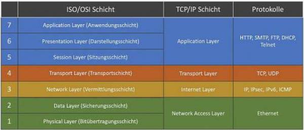 InternetschichtPaketeIP-AdressenDiese Schicht entspricht der Netzwerkschicht des OSI-Modells und ist für die Adressierung, Routing und Fragmentierung von Datenpaketen zuständig.IP, IPSec, ICMP